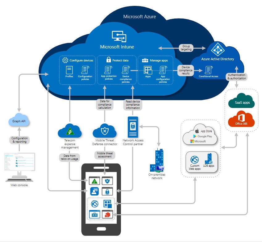 Microsoft Intune är en molnbaserad tjänst som fokuserar på hantering av mobila enheter (MDM) och hantering av mobilprogram (MAM). Du kan styra hur organisationens enheter används, till exempel mobiltelefoner, surfplattor och bärbara datorer. Du kan också konfigurera specifika principer för att styra program. Du kan till exempel förhindra att e-postmeddelanden skickas till personer utanför organisationen. Med Intune kan personer i organisationen också använda sina personliga enheter för skola eller arbete. På personliga enheter ser Intune till att organisationens data förblir skyddade och kan isolera organisationsdata från personliga data.
